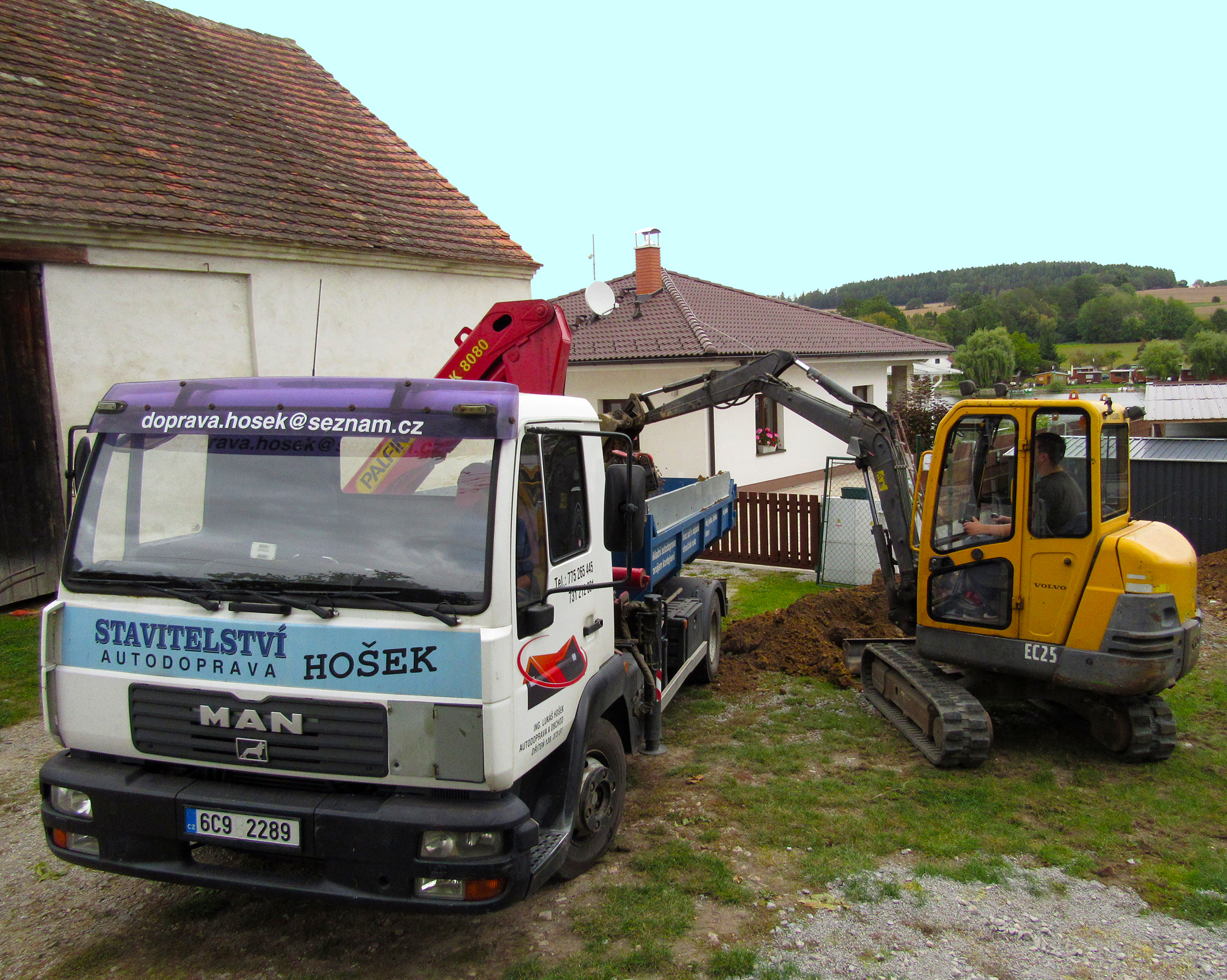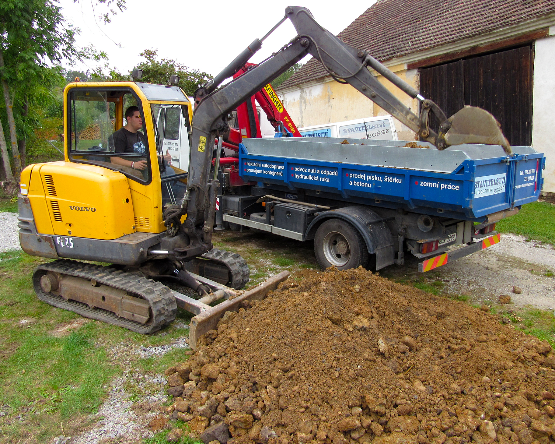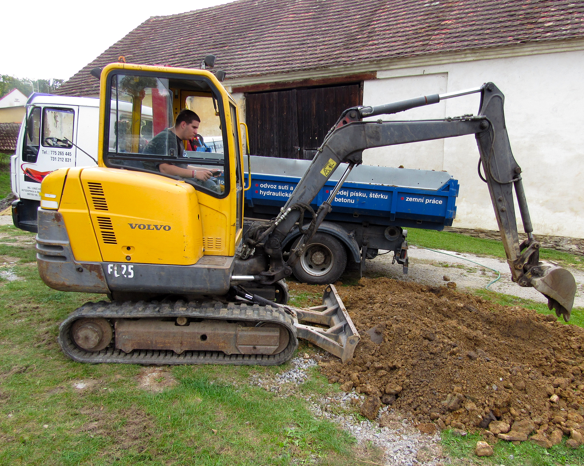 - výkopové práce, terénní úpravy – vlastní mechanizací (pásový bagr)